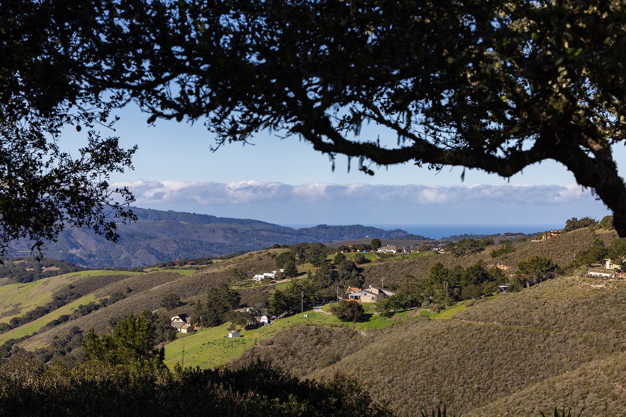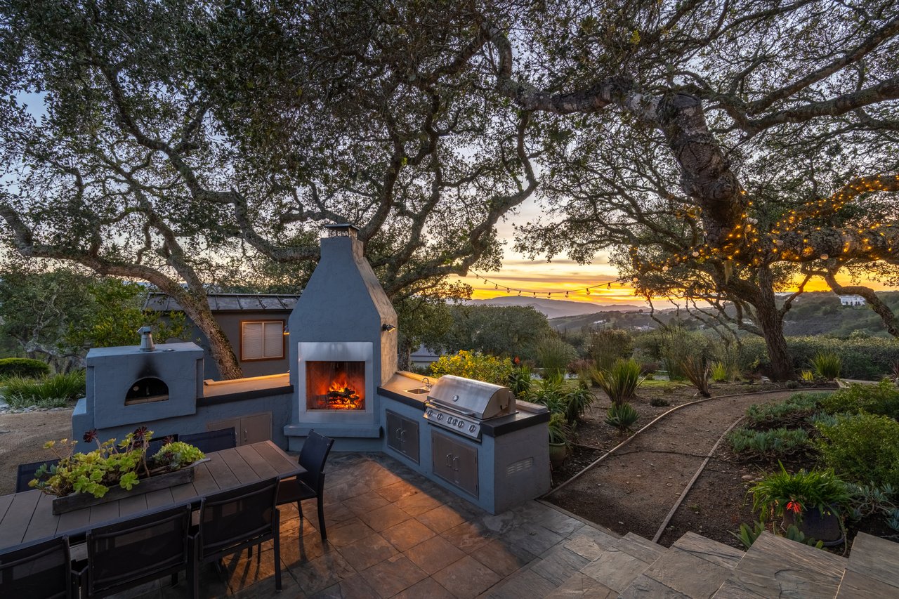 Designed with intention and rooted in its extraordinary landscape, this exceptional residence is a study in connection, craftsmanship, and quiet grandeur. From every vantage point, breathtaking panoramas unfold—Mt. Toro rising in quiet majesty, the Pastures of Heaven rolling below, Talbott Vineyards stretching toward the Santa Lucia Range, and the Pacific shimmering in the distance. A comprehensive renovation by acclaimed designer Bob Carver elevates indoor-outdoor living, with meticulous detail throughout. Three luxurious en suite bedrooms open through French doors to private outdoor spaces. Two wood-burning fireplaces create warm, inviting settings for conversation and quiet evenings. The chef’s kitchen features porcelain countertops, custom German composite cabinetry with Sub-Zero cooling drawers, and a commercial-grade Wolf range. Outdoors, a fully equipped kitchen with pizza oven, grill, and fireplace anchors the terrace, while a hot tub offers peaceful relaxation beneath expansive skies. Beyond its features, the home’s true distinction is its atmosphere—a rare sense of calm that enriches, restores, and inspires.
